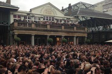 По данным BBC News, на площади собрались более двух тысяч зрителей. В качестве сцены музыкант использовал кузов грузовика, заранее припаркованного на площади.